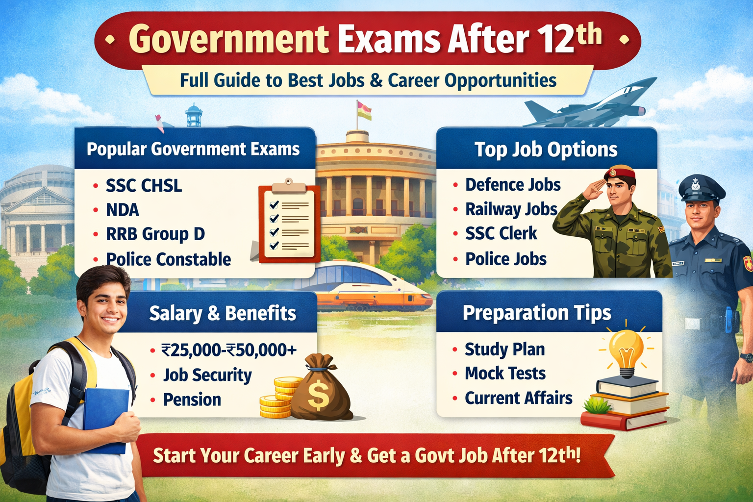 If you have just completed your 12th and are confused about your career, then choosing government exams after 12th can be one of the smartest decisions of your life. Every year, lakhs of students search for government jobs after 12th because they want a secure future, stable income, and long-term growth.